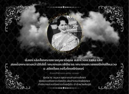 ขอน้อมส่งเสด็จสู่สวรรคาลัย สมเด็จพระนางเจ้าสิริกิติ์ พระบรมราชินีนาถ พระบรมราชชนนีพันปีหลวง ธ สถิตในใจไทยนิรันดร์ เป็นพระมหากรุณาธิคุณอย่างหาที่สุดมิได้ ด้วยเกล้าด้วยกระหม่อมขอเดชะ ข้าพระพุทธเจ้า ผู้บริหารและบุคลากรทางการศึกษา สกร.ระดับอำเภอภักดีชุมพล